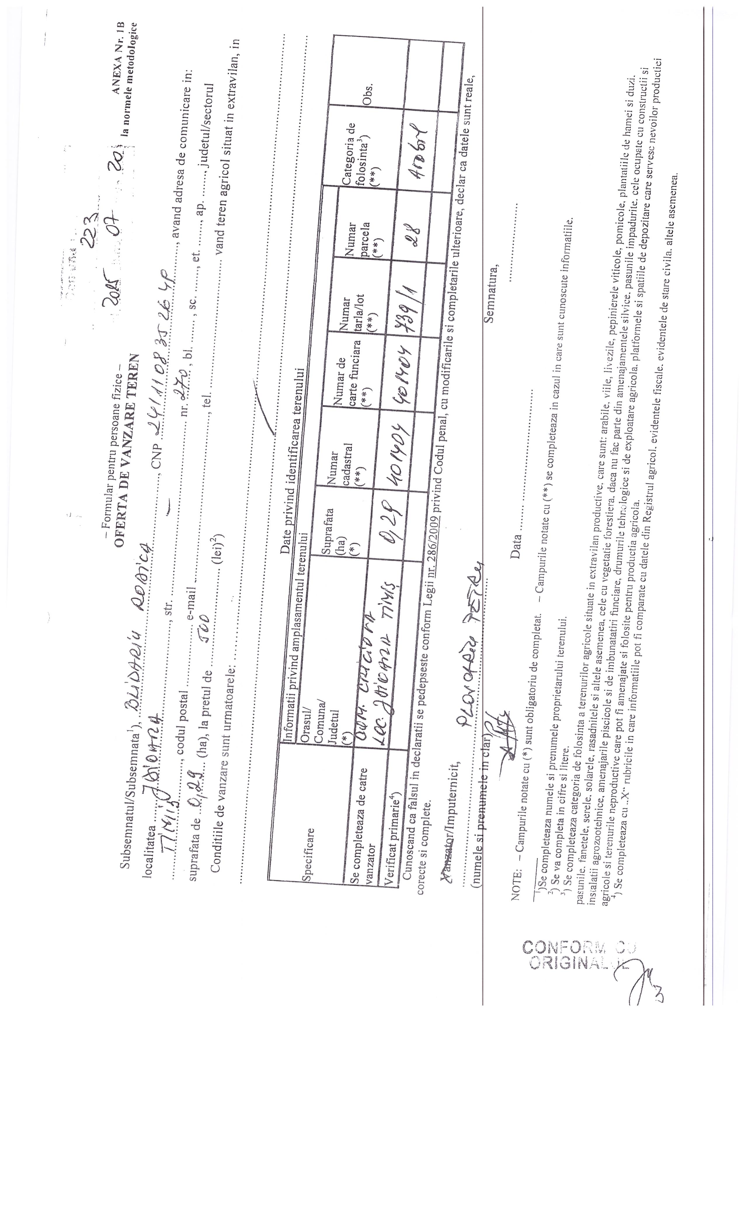 Agricultură / Fond funciar/ Registru agricol