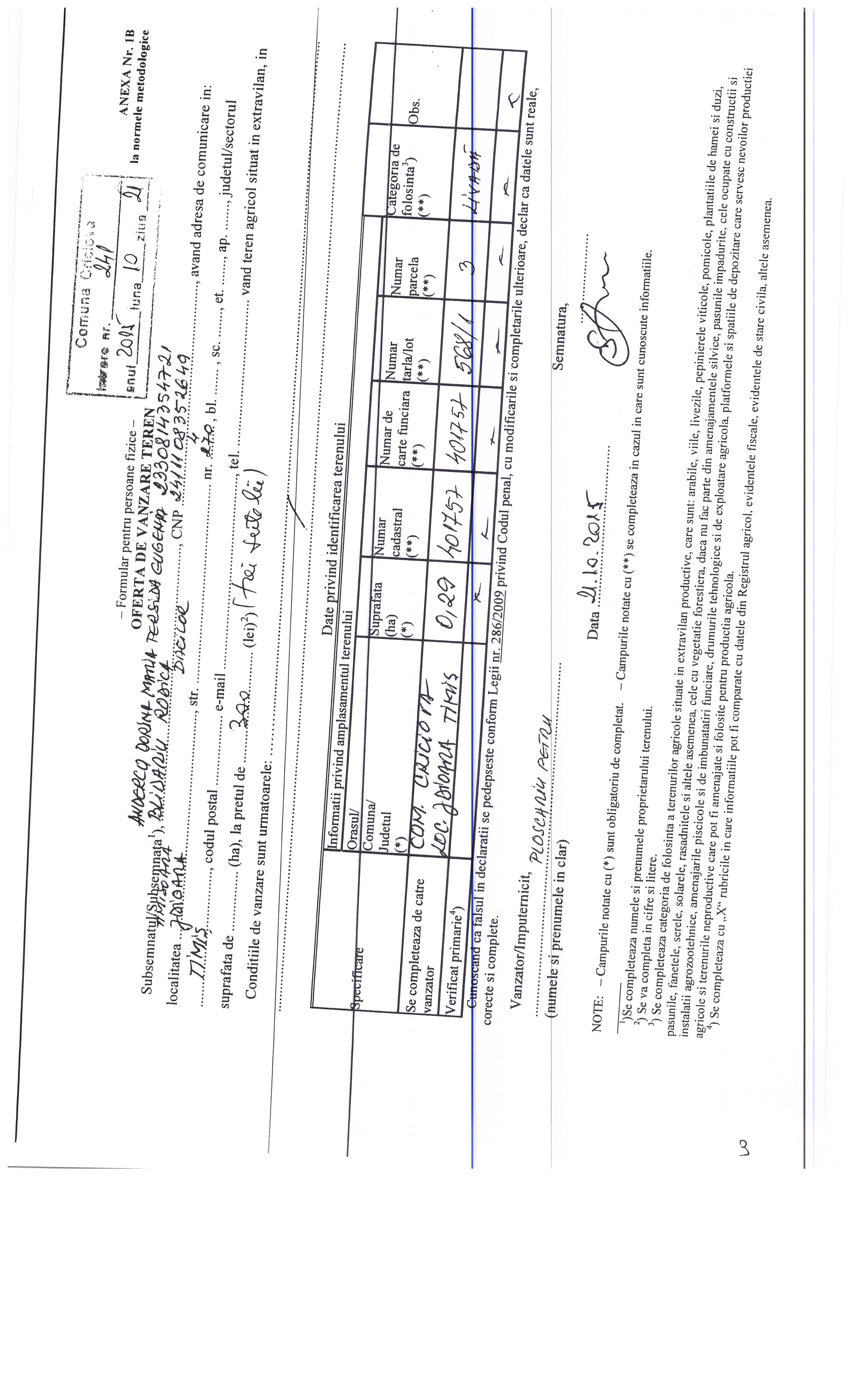 Agricultură / Fond funciar/ Registru agricol