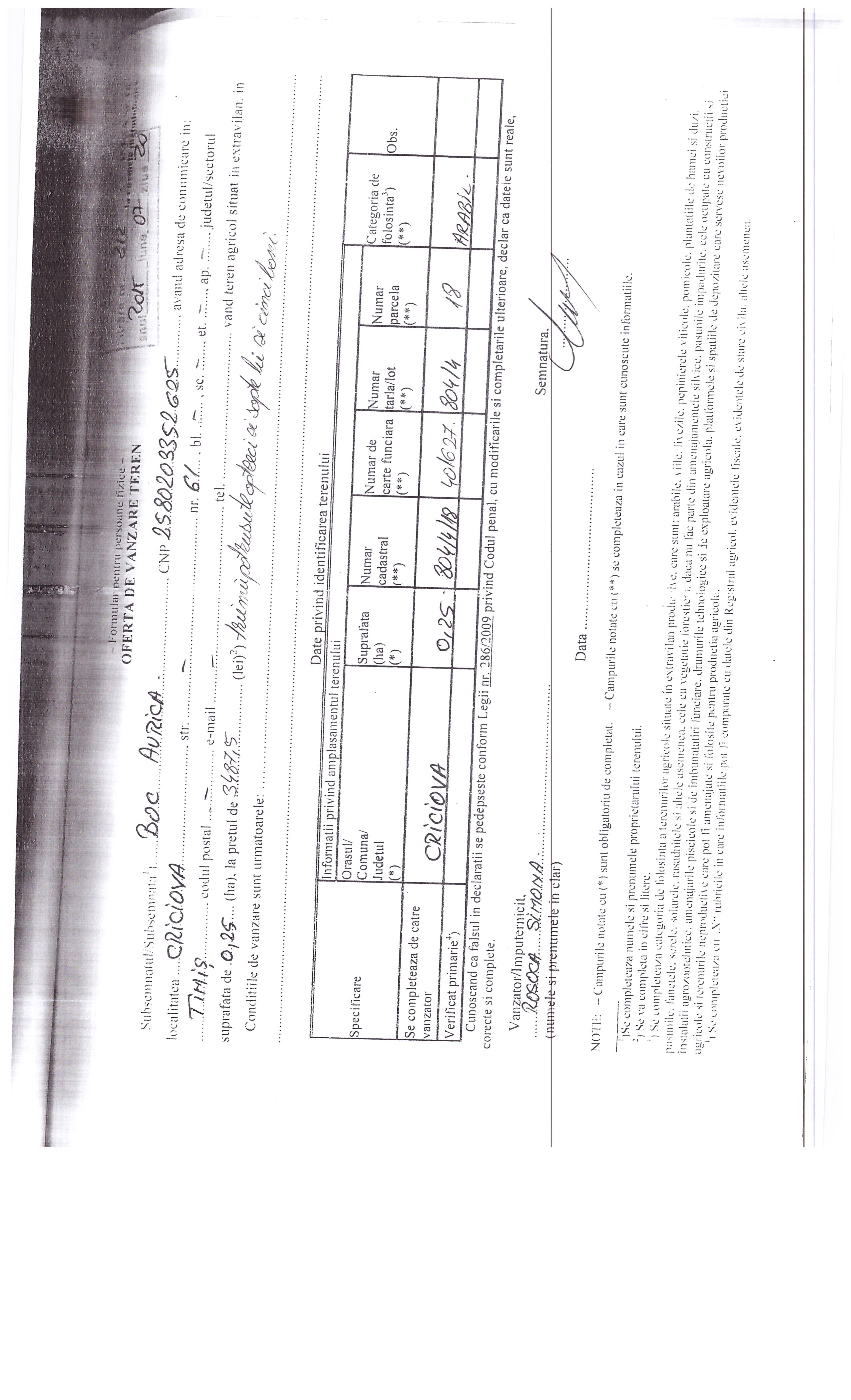 Agricultură / Fond funciar/ Registru agricol