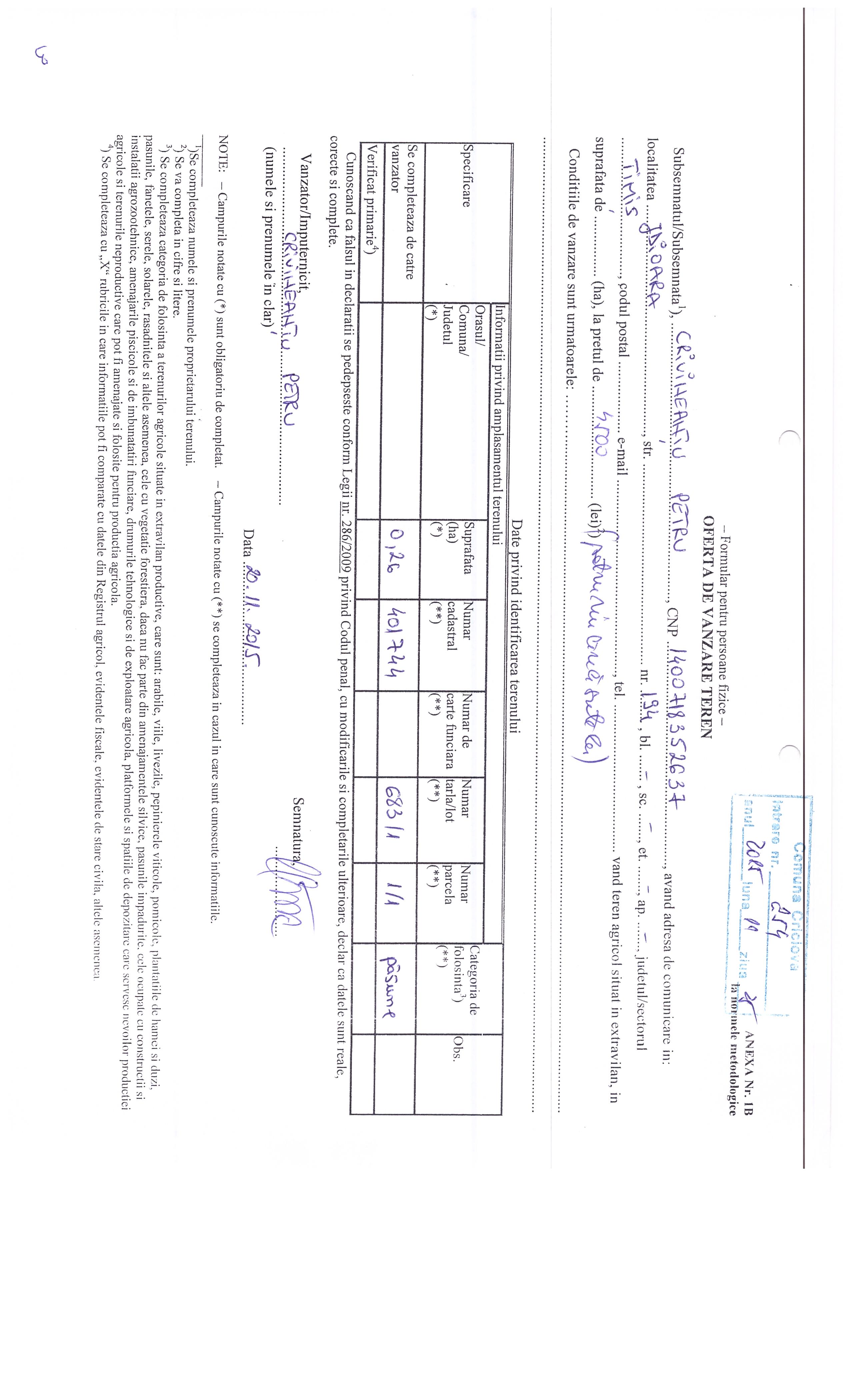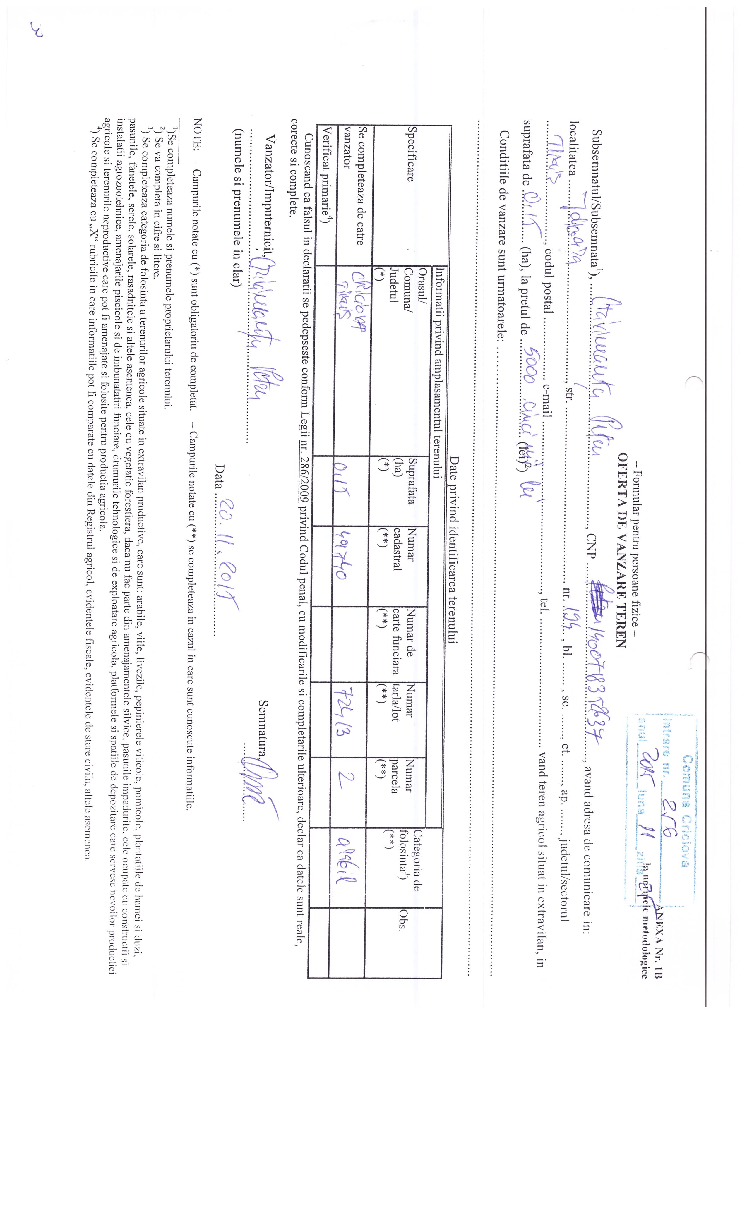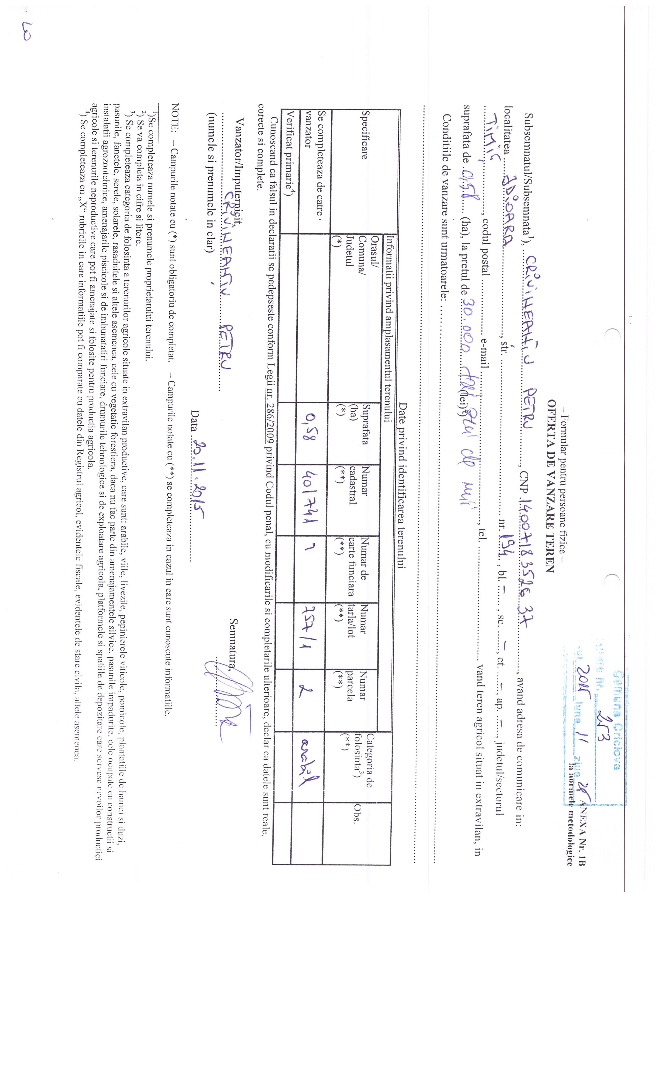 Agricultură / Fond funciar/ Registru agricol