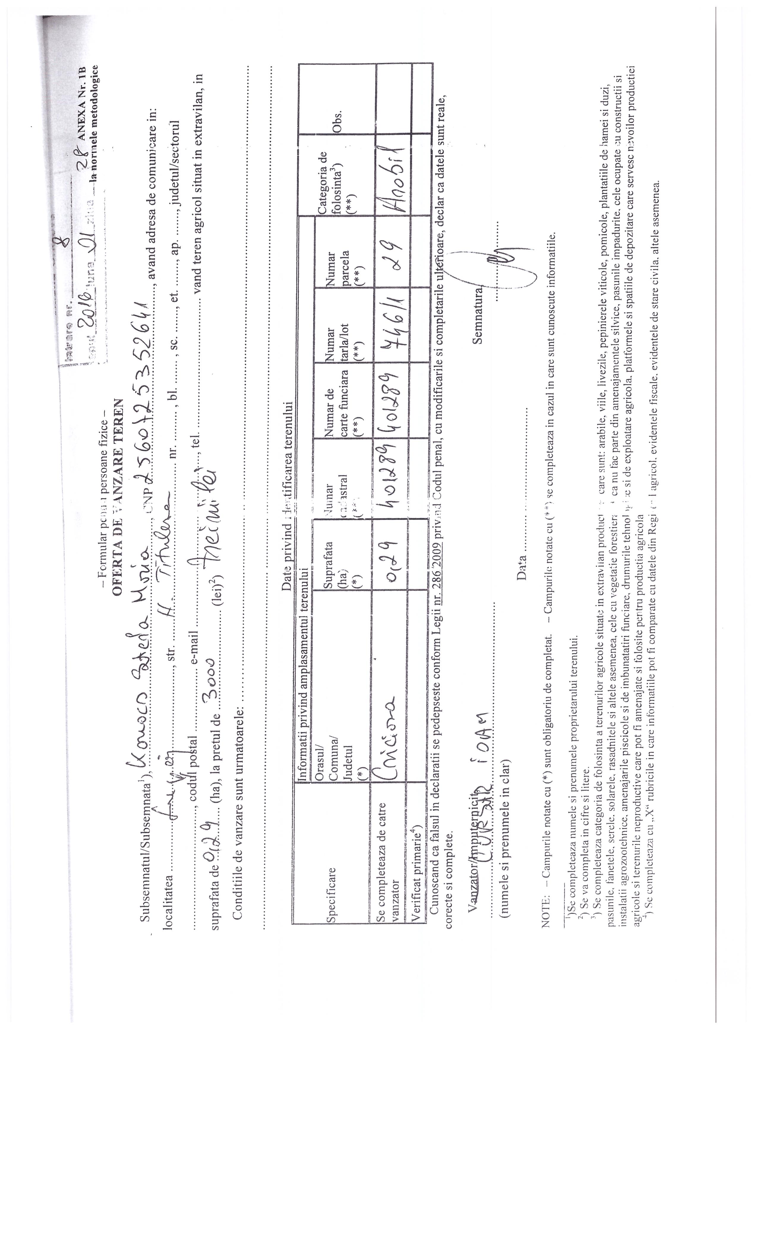 Agricultură / Fond funciar/ Registru agricol