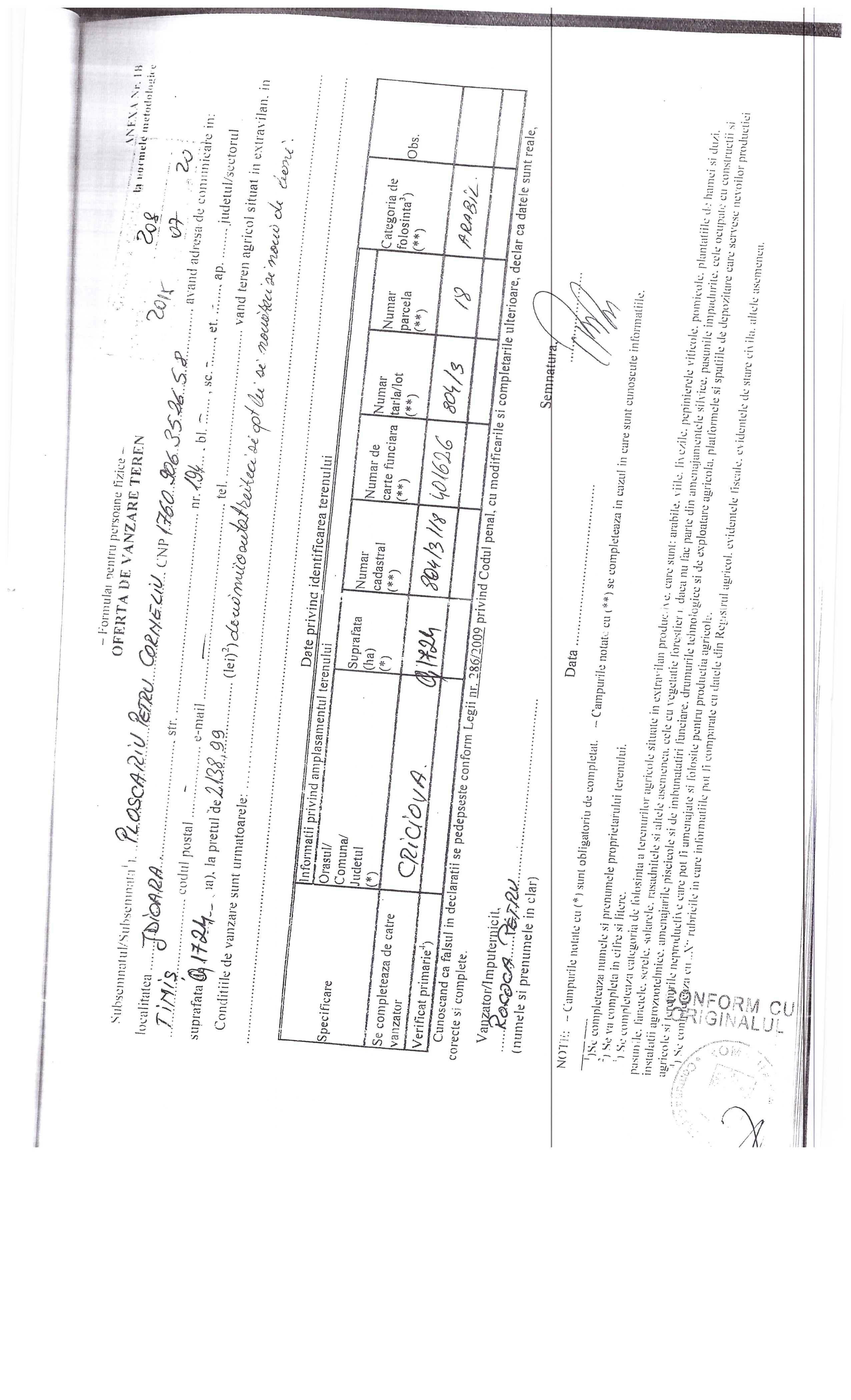 Agricultură / Fond funciar/ Registru agricol