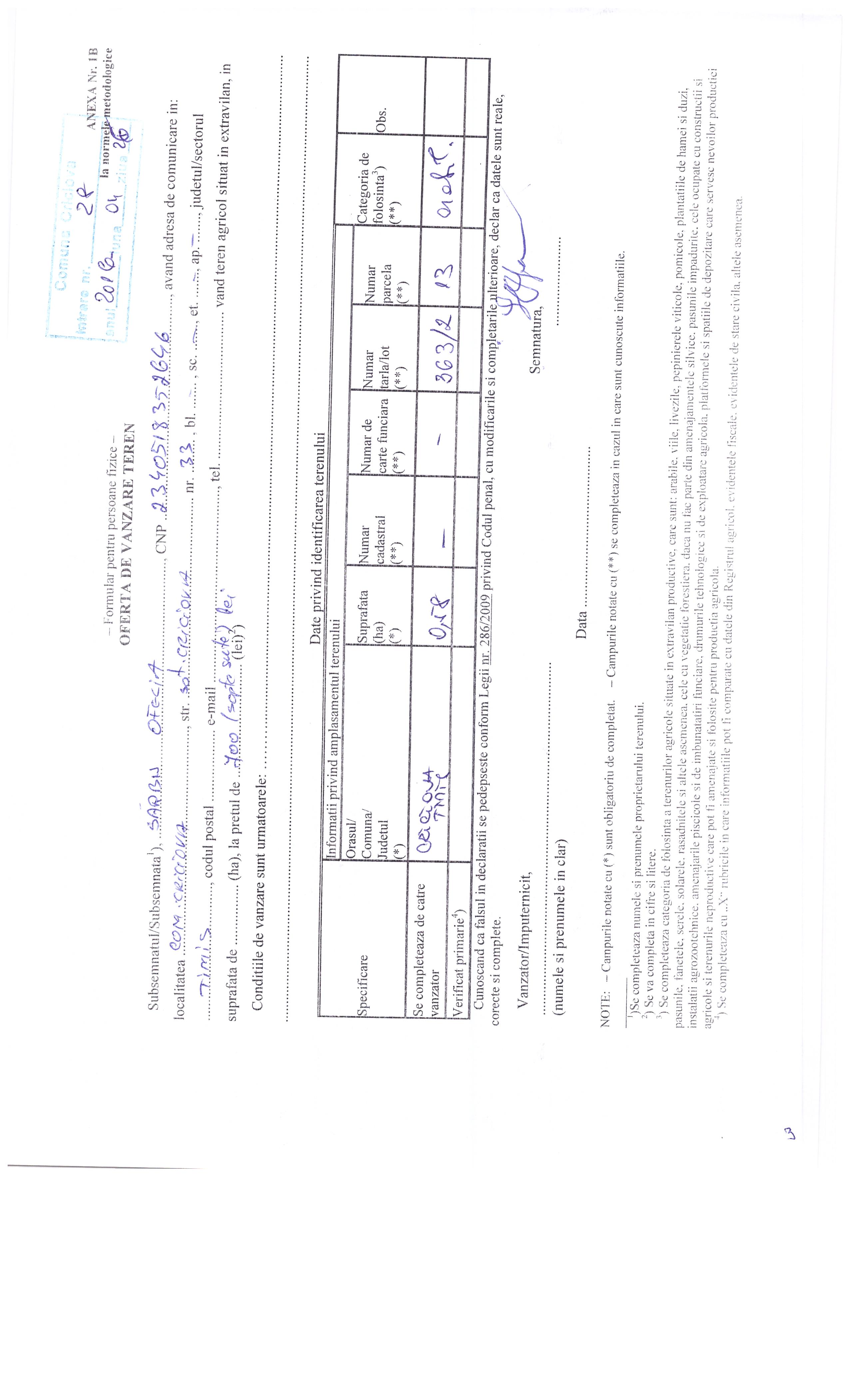Agricultură / Fond funciar/ Registru agricol