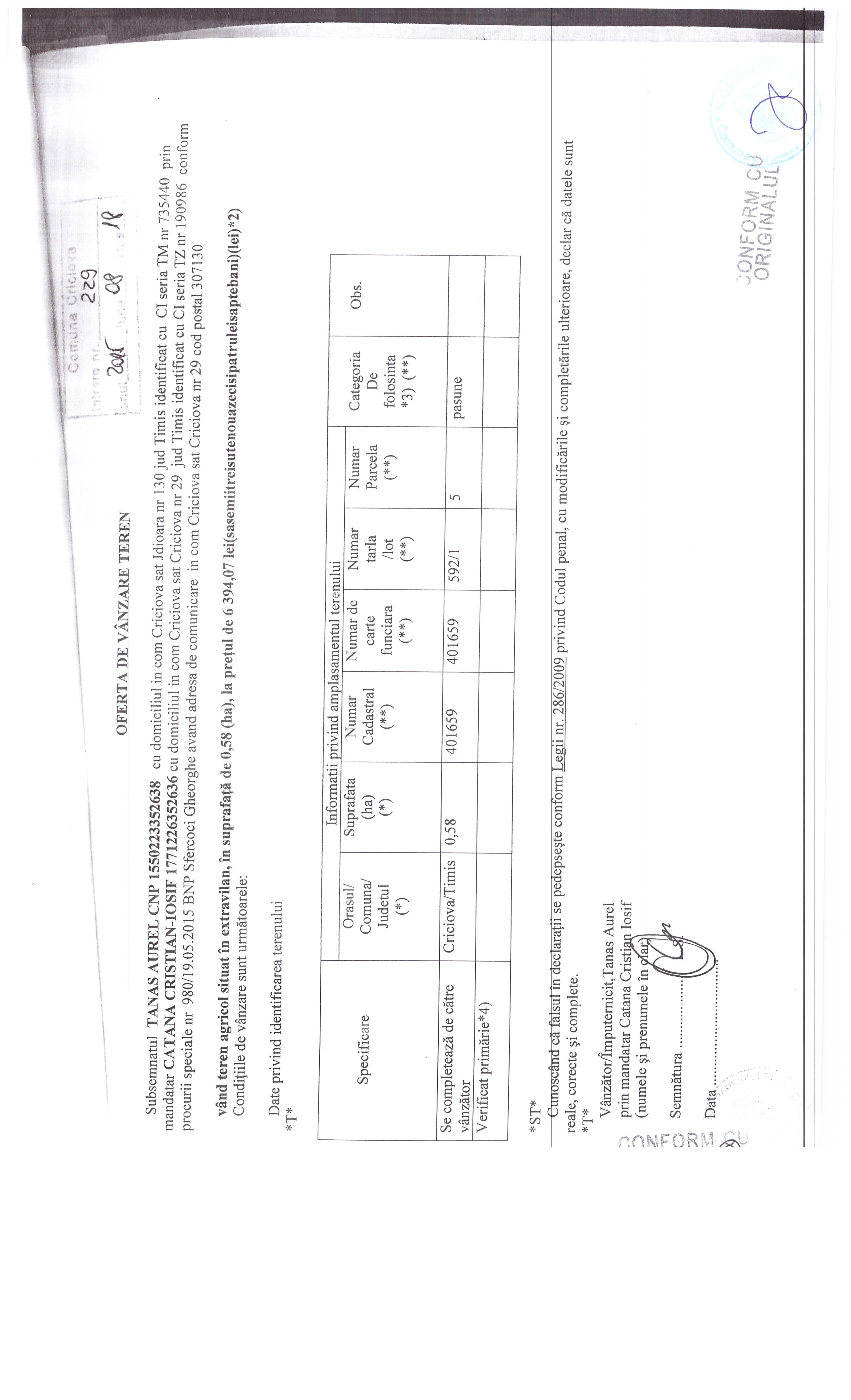 Ofertă de vânzare
