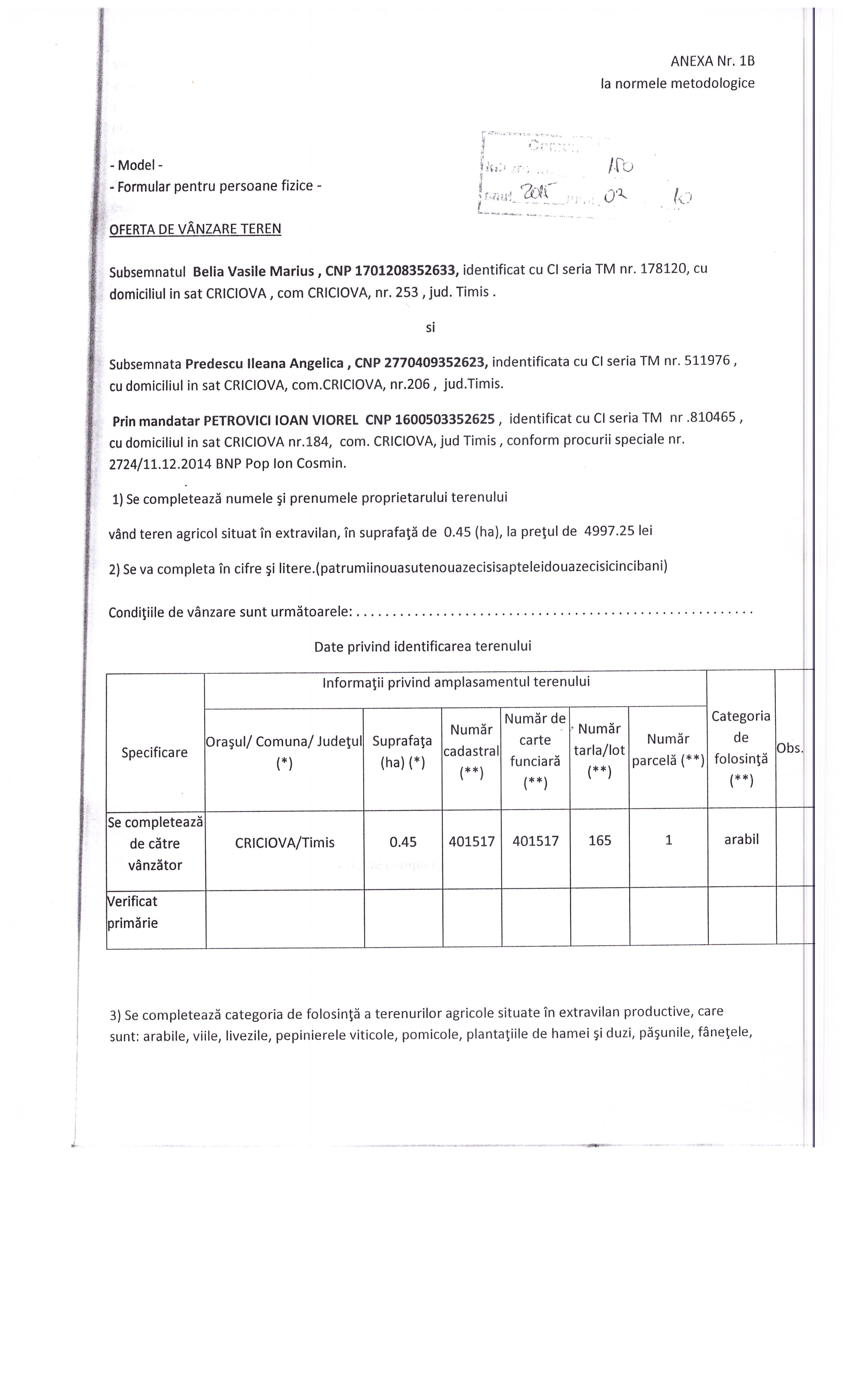 oferta teren belia predescu 150