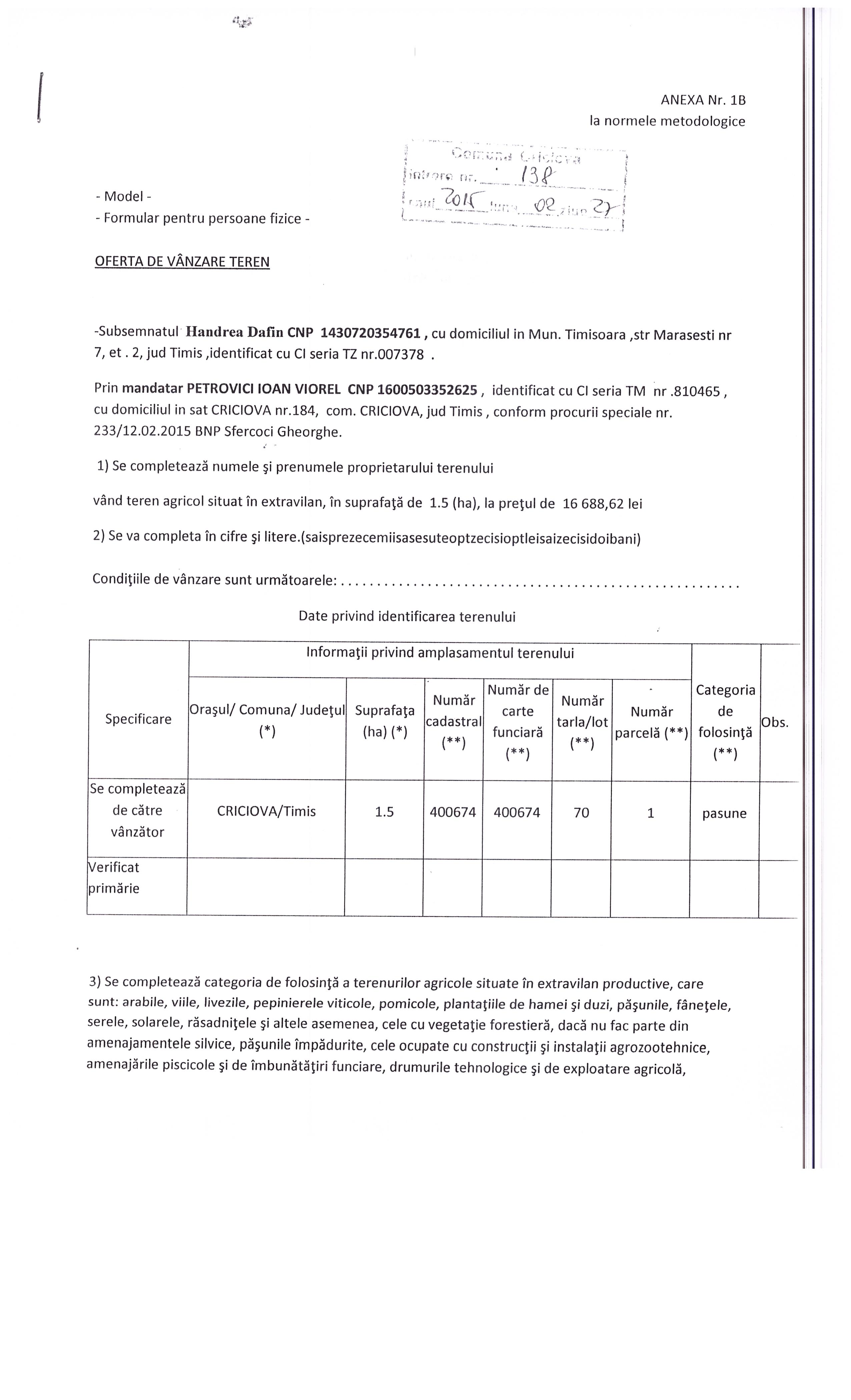 oferta teren handrea 138
