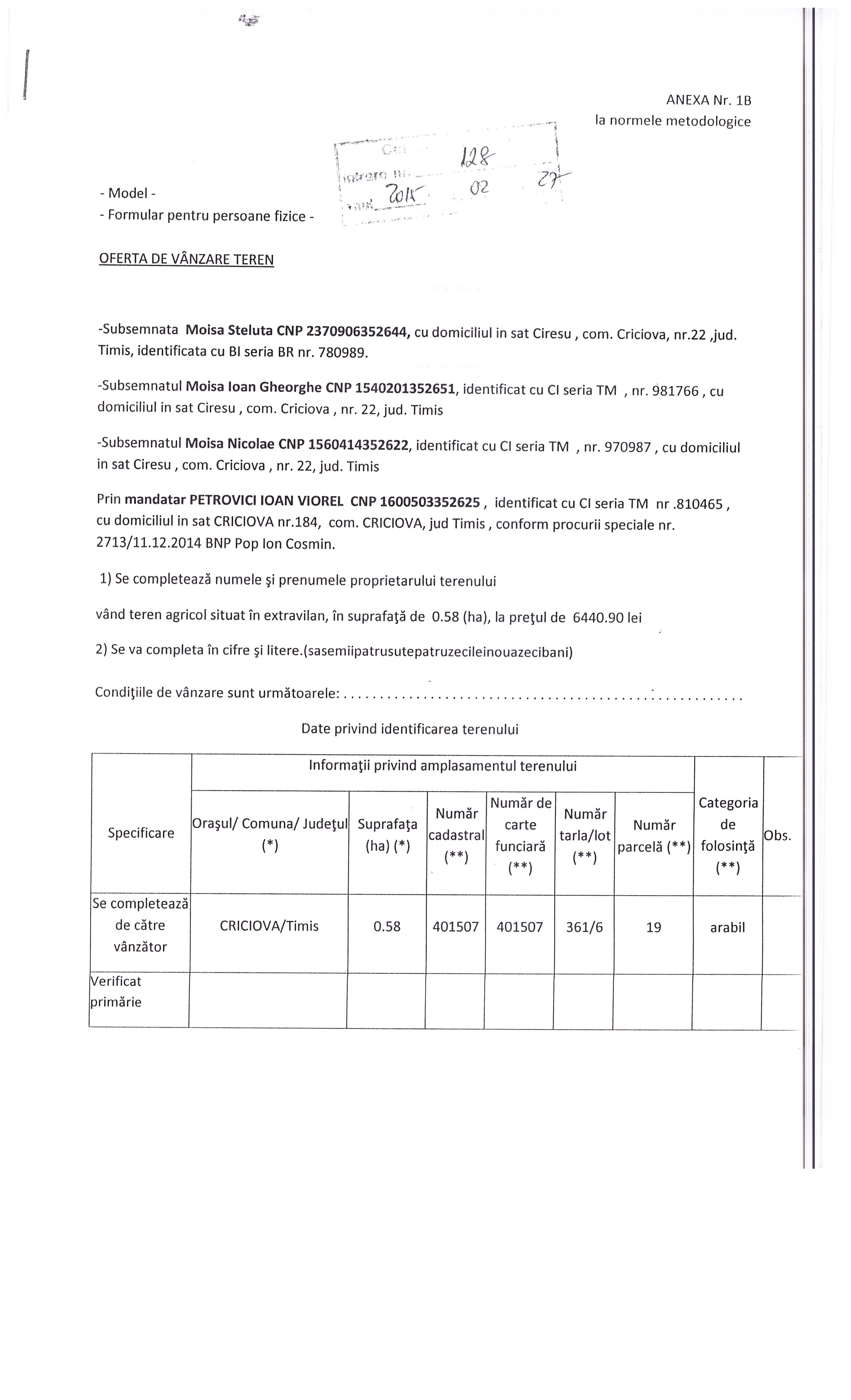 oferta teren moisa 128
