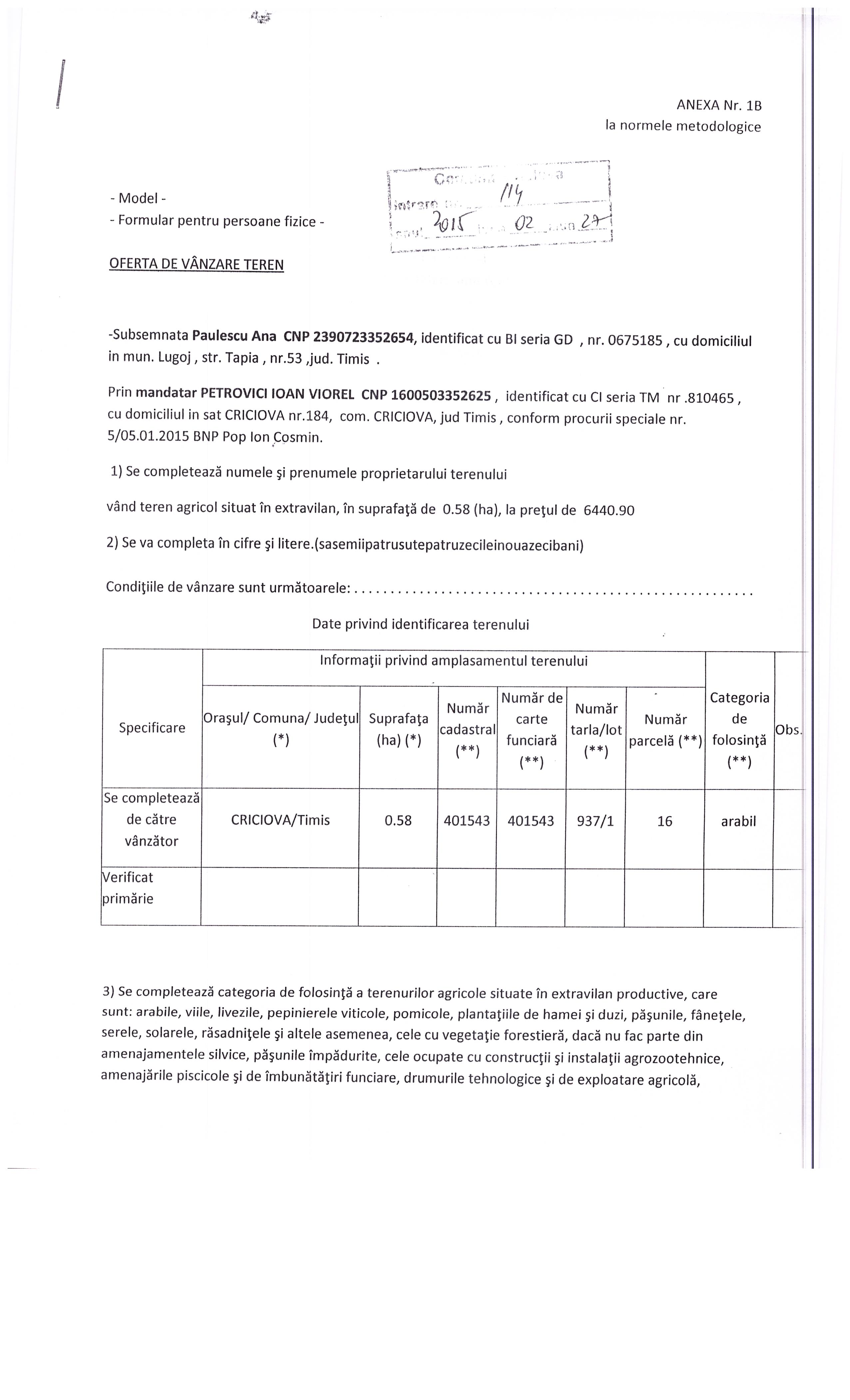 oferta teren paulescu 114