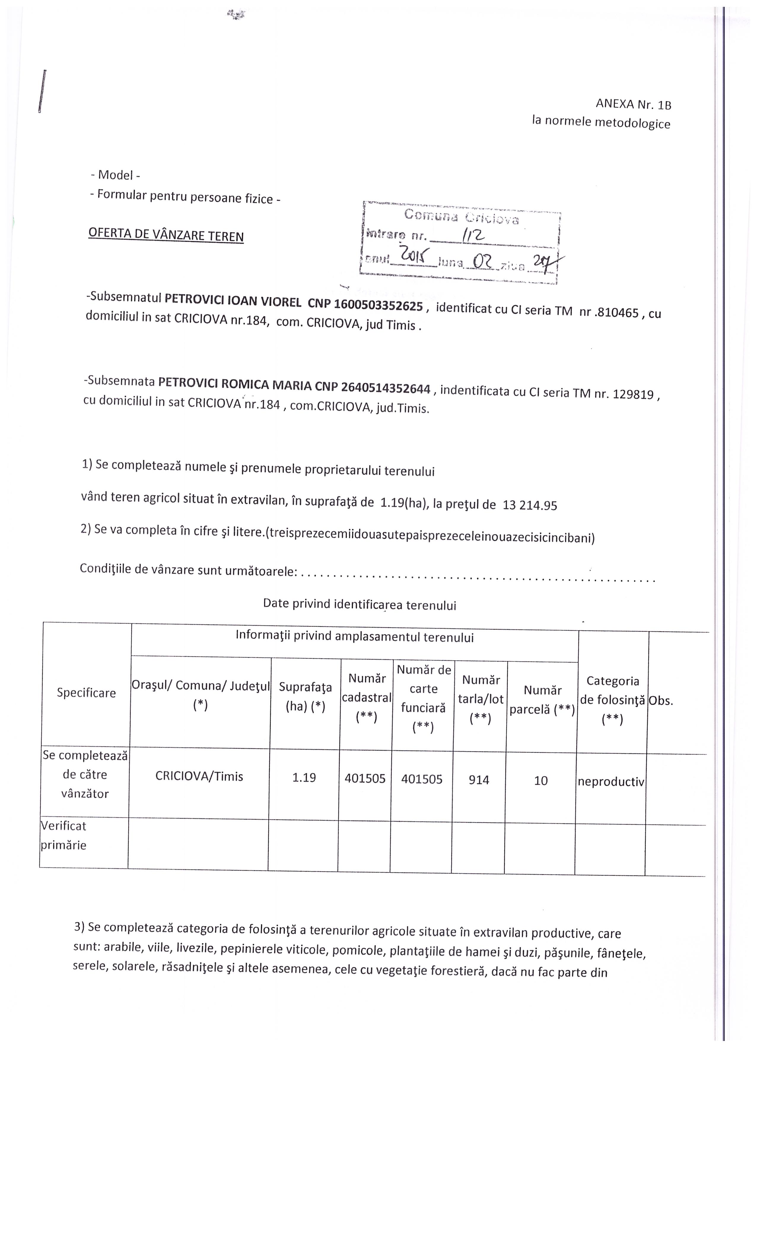 oferta teren petrovici 112