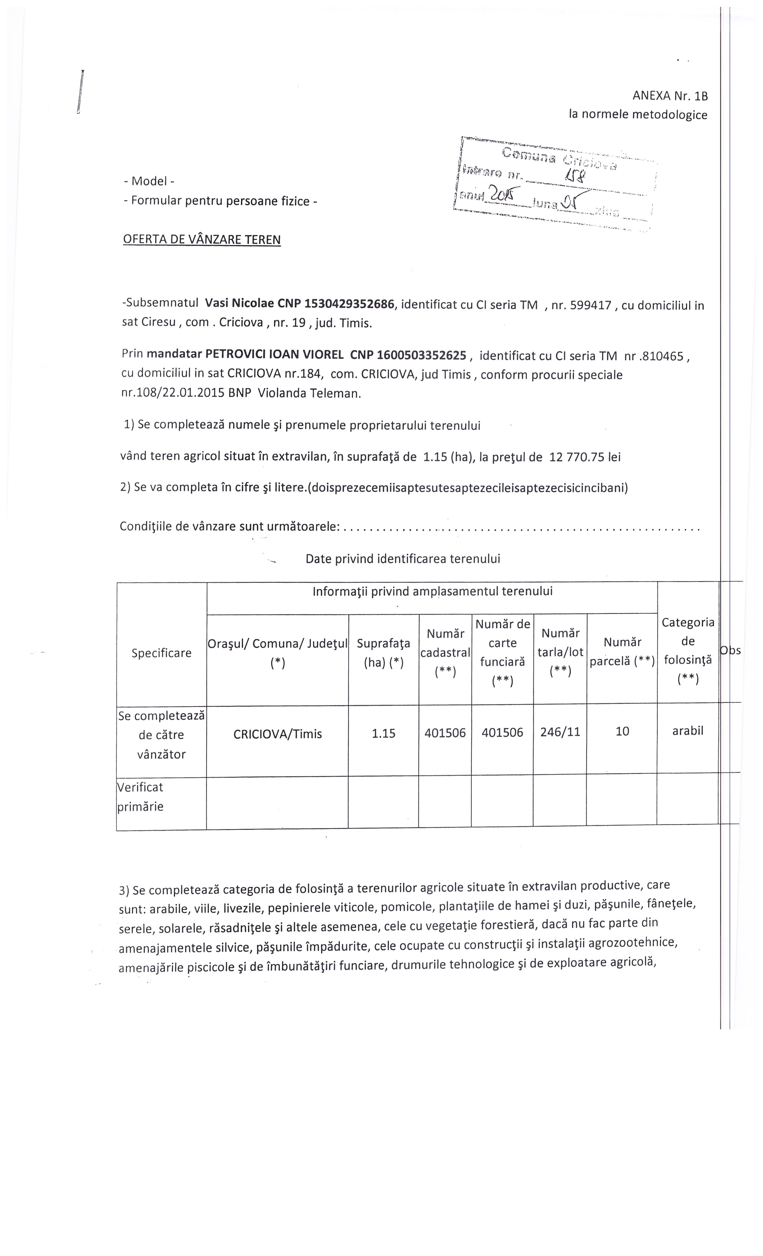 oferta teren vasi 158