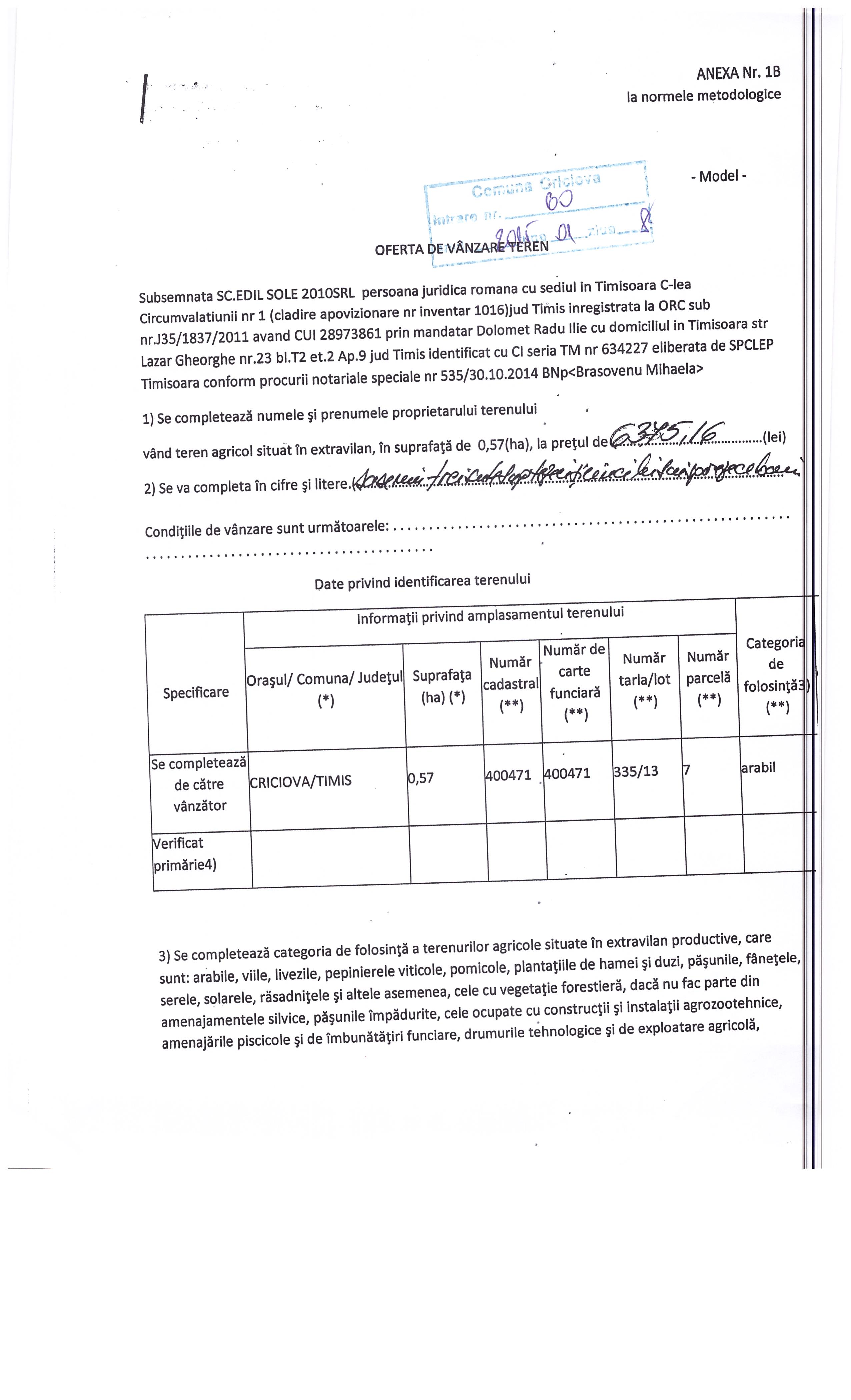 Agricultură / Fond funciar/ Registru agricol