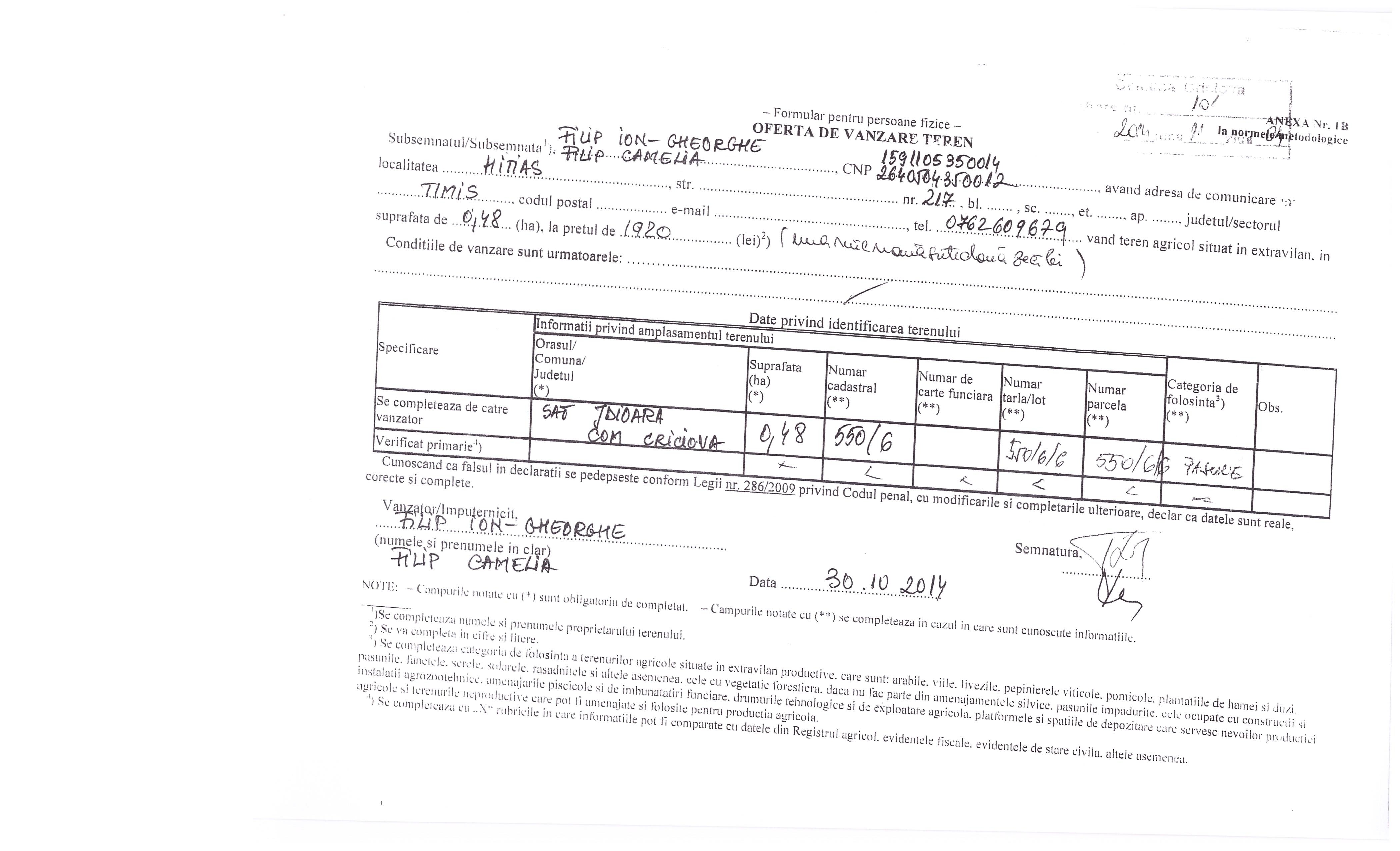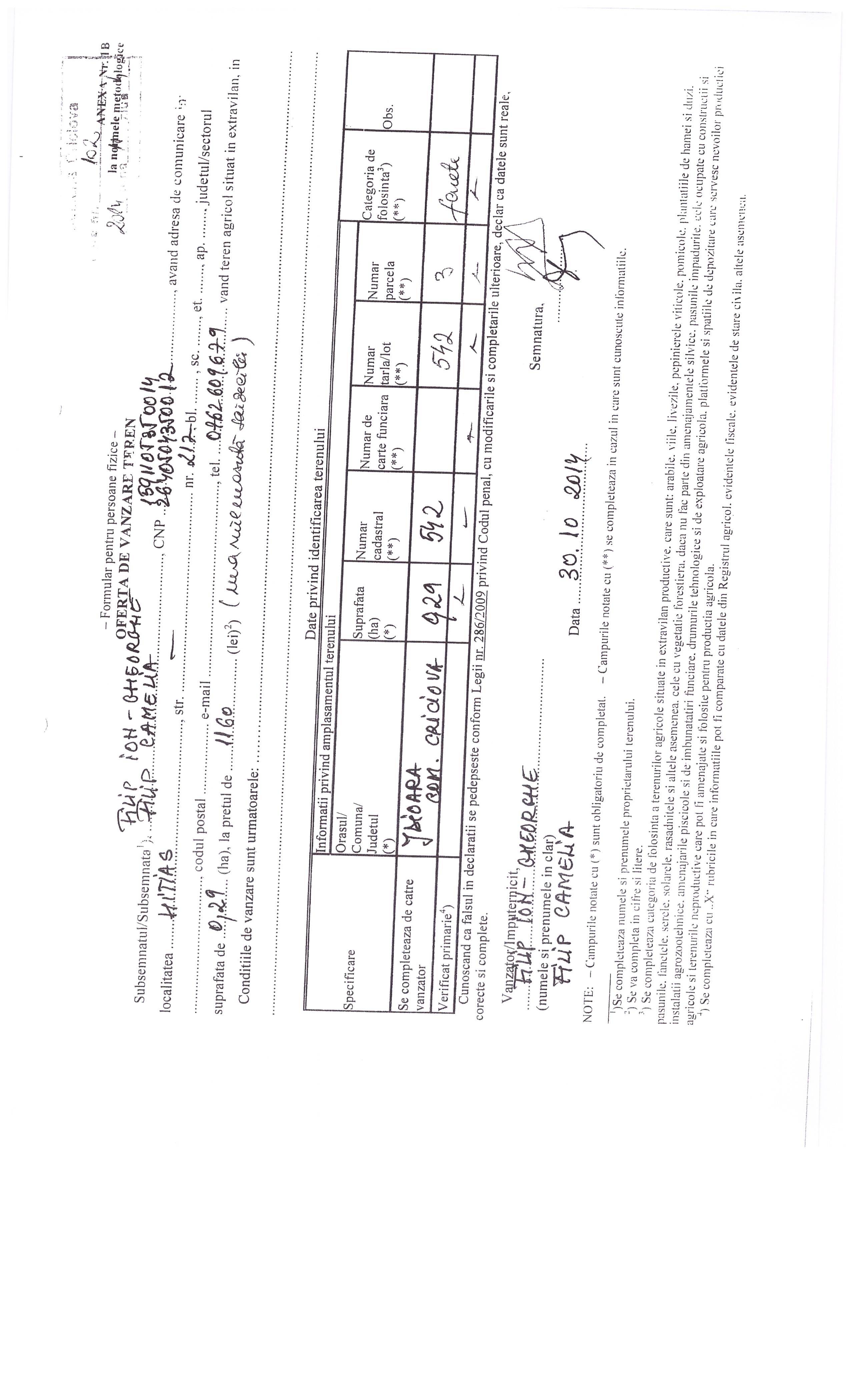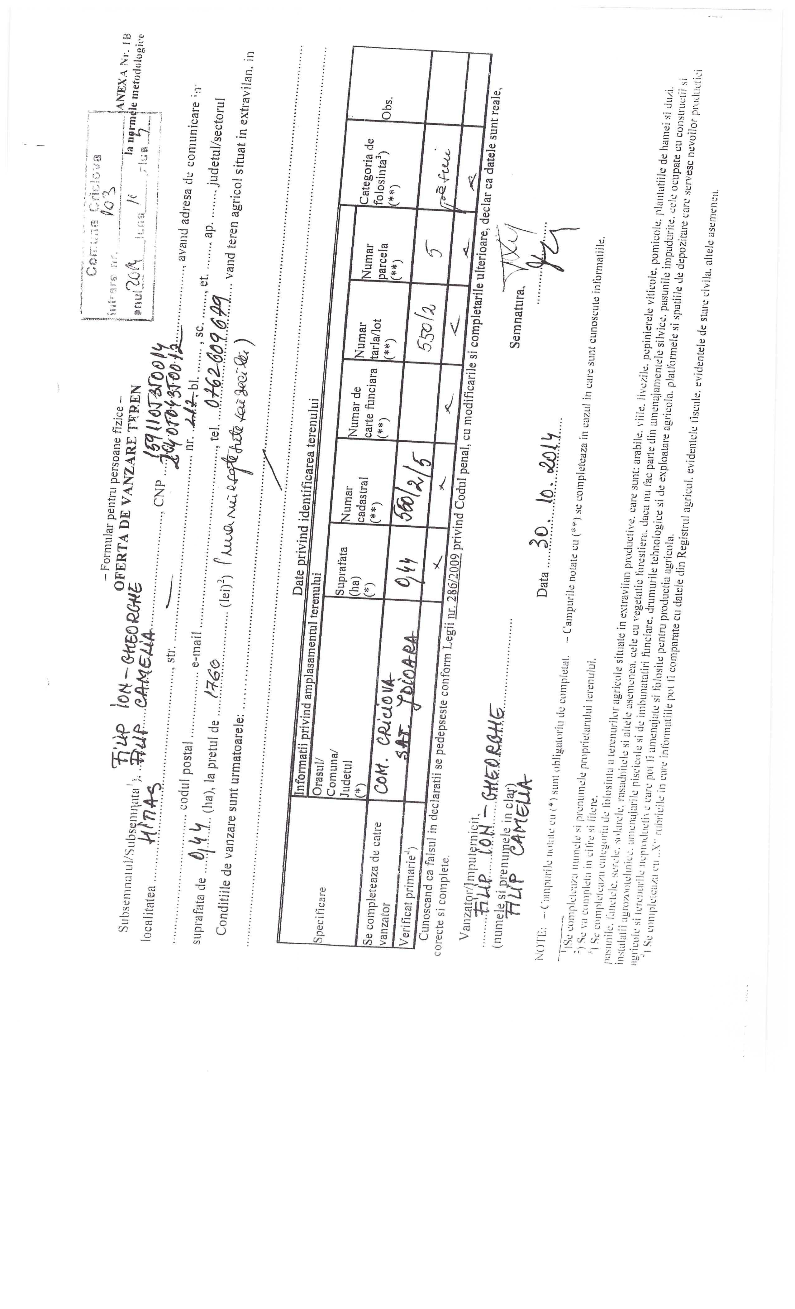 Agricultură / Fond funciar/ Registru agricol